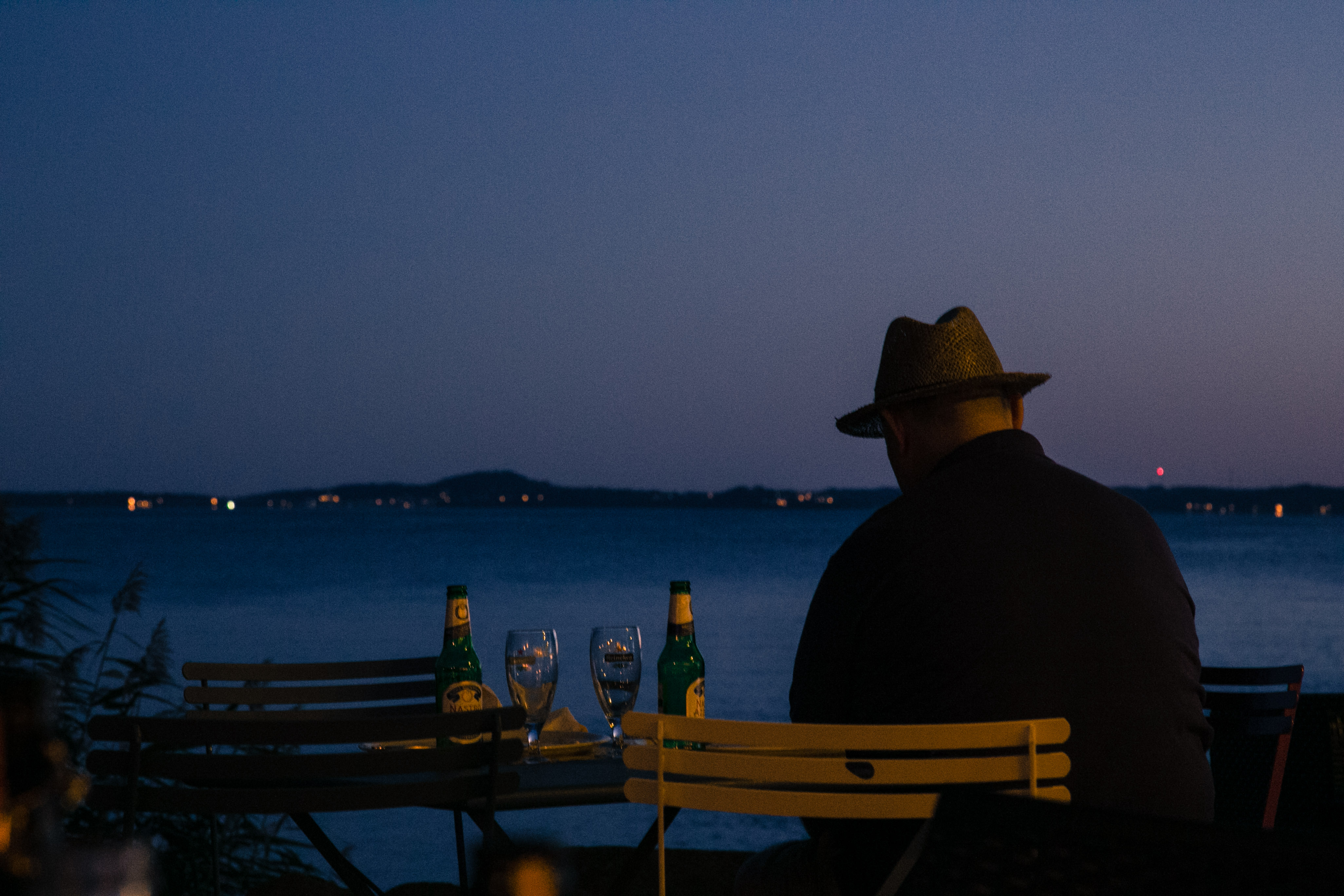 Mi misi in auto e vidi che si dirigeva verso Civitavecchia. Guidai come un forsennato, mentre lui si dirigeva verso Viterbo prima, poi Montefiascone, e infine Bolsena. Il telefono continuava ad essere acceso, e indicava un punto sulla strada. Continuai a seguire la mappa, e arrivai ad un bar da cui si vedeva il lago. Parcheggiai e tornai verso il punto indicato dalla mappa a piedi, mettendo al massimo l’ingrandimento. Il punto era al di fuori del bar, c’era un unico avventore. Era il tramonto, la vista del lago era incantevole. In lontananza, le luci delle case sulla riva opposta, e una pallina di fuoco poco sopra l’orizzonte stava tramontando. L’uomo mi dava le spalle, aveva un cappello in testa ed un giaccone. Sedeva ad un tavolino sul quale c’era un vassoio con due birre e due bicchieri. Mi nascosi, pensando che avesse appuntamento con qualcuno. Stetti lì ad aspettare, il sole era tramontato ed era buio. L’uomo rimaneva immobile, apparentemente guardando nel vuoto. Venne il cameriere, a dirgli che stavano chiudendo, lui fece sì con la testa e il cameriere portò via il vassoio, le birre e i bicchieri. Il bar chiuse. Uscii dal nascondiglio e mi avvicinai silenziosamente, sino ad arrivare alle sue spalle.