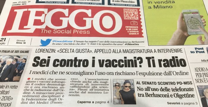 Nel testo dell’articolo si legge che «Sono già in corso e sono stati fatti procedimenti disciplinari per medici che sconsigliano i vaccini. Si può arrivare anche alla radiazione.»